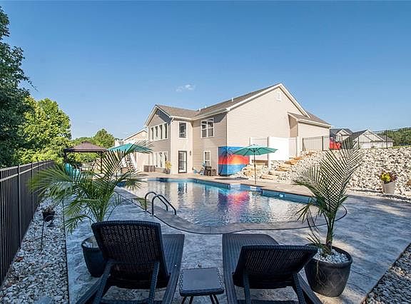 Welcome to this Stunning 4 bedroom 3 bath Atrium Ranch upgraded to the Nines. As soon as you walk thought the door you are greeted with an split floor plan t with Vaulted ceilings and a wall of windows overlooking the back yard Oasis. The kitchen is open with wall to wall cabinets topped with granite counter tops, hardwood floors and stainless appliances. Entering the master bathroom double bowl sink and large custom walk in shower with multiple shower heads. Main floor laundry and a second one located on the finished lower level. The fully finished basement with a 4th bedroom along with a fully Customized bathroom walk in shower. Did we mention the Movie Room with Electric Fireplace all to walk out to the spectacular stamped concrete patio with covered gazebo surrounding the heated In Ground POOL for year around usage . Up top we have a maintenance free deck with extra storage below to help keep the Large 3 car garage open for use. Come see today before it is GONE TOMORROW