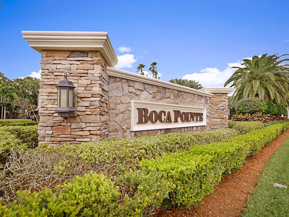 Largest end unit w/garage in Cortina. Boca Pointe is a beautiful, gated, Country Club Community where memberships ARE NOT REQUIRED. All memberships ARE AVAILABLE. Remodeled kitchen w/Country French cabinets, lazy susans, granite counters & backsplash, center island, stainless steel appliances, pantry, double stainless sink + a separate ''prep'' sink. Stone look tile downstairs. Formal Dining Room, spacious living room w/plantation shutters. Pretty powder room w/pedestal sink. New laminate on the stairs & 2nd story. Oversized, 2nd floor Master Suite has 10'x8' walk-in closet, new white shaker vanity w/quartz top & 2 sinks, a soaking tub + separate shower w/seamless enclosure. Freshly painted interior. Impact windows & sliders. There are no polybutylene pipes in the home. Community pool. Answers to Frequently Asked Questions + Things You Should Know: