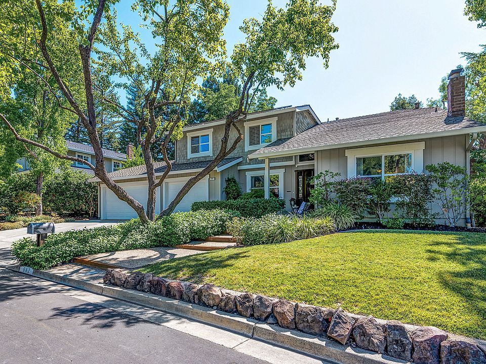 In the sought-after Woodbine Danville neighborhood, this two-story charmer has been meticulously maintained and exhibits outstanding finishes throughout. To the right of the grand foyer, the stone fireplace and tall ceilings are the staple of the living room. The formal dining room is an ideal size for family and friend gatherings leading into the bright eat-in kitchen. The kitchen has been completely remodeled with beautiful alder cabinets, granite countertops, buffet bar, and stainless steel appliances. Exposed wood beams and brick fireplace cozy up the alluring family room. Past the iron rod staircase, the second level showcases 4 carpeted bedrooms and 2 full bathrooms including a spacious master retreat. The natural light shines through the plantation shutters of each of the generously sized bedrooms. Get ready to entertain in the nicely landscaped backyard with a build in BBQ + bar, and patio covered by an oversized pergola. Close to award winning schools, Downtown and 680 access