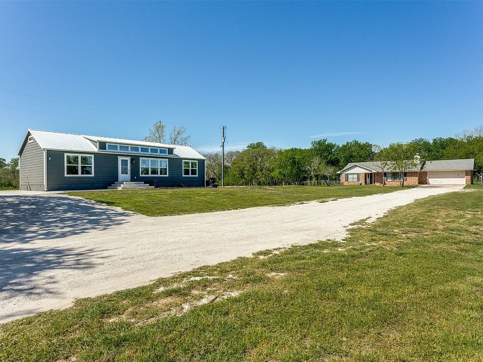 WE ARE IN MULTIPLE OFFERS. ALL OFFERS TO LISTING AGENT BY NOON SAT., 4-13. SEE PRIVATE REMARKS.IMPORTANT: INFORMATION ABOVE IS FOR THE SECOND (BRICK) HOME. THE INFORMATION FOR THE FIRST HOME(TINY)HOME IS IN DOCUMENTS.This is such a unique opportunity to own a beautiful property with 2 homes, just 8 minutes from Denton! The second home has been a rental but is in great condition with 3 bedrooms and 1 bath.The first home, what we call the tiny home, is 900 sq.ft with 2 lofts not included in that sq.footage and is only 2 years old. It's gorgeous and features a stunning full size kitchen with induction range that has a built in air fryer!There are 3 spacious bedrooms and big bathroom.Off the kitchen you'll find a 640 sq.ft. deck-with electricity and above ground pool, lots of room to play!Both barns have electricity,big one has water as does the chicken coop.This stunning property has a deep creek,pond and tons of beautiful trees.There is an additional water meter installed for future use.