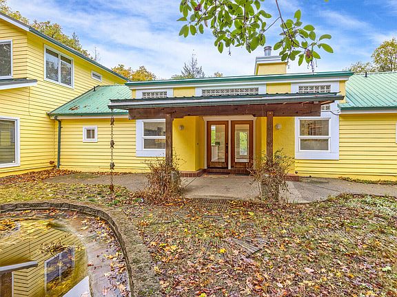 Amazing 9.66 level, creekfront acres with beautiful 3078 sq ft 3 bed, 3 full bath home & 1 bedroom guest house, complete with orchard, established walking trails, shed & barn. Main home features vaulted ceilings, architectural detail, hardwood & tile floors. The kitchen, with stone & butcher block counter tops, commercial style range, skylight & pantry. Lovely stone fireplace w/certified insert graces the living room & there are plenty of windows to bring the outdoors in. Guest house feat 1 bed, 1 full bath, large living room & certified wood stove. Newer mini splits in both units are energy efficient. Exterior features include water feature, patio, private hot tub, sheds, greenhouse, fire pit & a few disc golf baskets! Don't let this peaceful paradise pass you by!