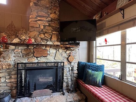 Great Cabin with a fall and winter view, 2 bedroom and 1 bath. Fully Remodeled interior in 2020. New luxery vinyl flooring throughout. New bathroom with new sink and Jacuzzi tub/shower. 2024 new landscaqping and wood fencing. New Mitsubishi mini split installed in 2021. Additional bonus room undeer back deck with washer and dryer and a half bath, storage for tools. Fully covered back deck with grill and outdoor seating. Counter tops are live edge wood with epoxy river poured with touquoise. New appliances in 2022. All furinture conveys . And a Hot tub for relaxing nights. Must see to appreciate this wondeful cabin.
