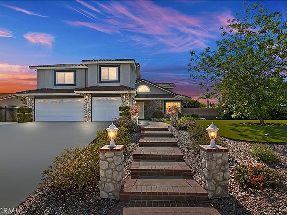 Stunning Mission Grove Cul-de-Sac Pool Home with Scenic Views! Welcome to this beautifully updated 4-bedroom, 3-bathroom home in a desirable Mission Grove cul-de-sac location. This property features a spacious bonus room and a remodeled kitchen, complete with stainless steel appliances, a breakfast bar, granite counters, and a cozy nook perfect for casual dining. The kitchen seamlessly opens into the family room, which boasts custom built-in cabinets and stone fireplace. The home’s elegant design is complemented by Brazilian walnut wood flooring downstairs, a custom ironwood staircase, and remodeled bathrooms. Upstairs, you’ll find a walk-in linen closet and a generous walk-in closet right off of the primary suite. Additional highlights include a laundry chute, ceiling fans, crown molding, and dual-pane windows with shutters for added comfort and energy efficiency. Step outside to your own private oasis, where you'll enjoy a large, covered patio with recessed lighting and a fan, perfect for entertaining. The outdoor kitchen is equipped with a built in gas BBQ and stove, ideal for summer gatherings. Relax in the solar-heated pool and spa or take in the sunrise, city lights, mountains, and greenbelt views from the balcony off of the primary bedroom. The property offers ample side yard space for extra parking or RV potential. Enjoy the raised garden area and beauty of multiple fruit trees, including avocado, tangelo, valencia, clementine, and fig. This home truly has it all—comfort, style, and stunning outdoor spaces. Don’t miss out on the opportunity to make it yours! No HOA! Great location, close to restaurants, shopping, UCR, freeway & minutes to downtown!