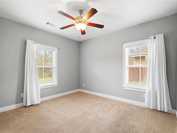 This home is equipped with lots of upgrades and is nestled onto a spacious .67 acre lot with a private backdrop! The Lakewood plan, by stone Martin builders, features a ranch style open layout, with the owners suite and study on one side of the home, the living space through the middle, and the guest bedrooms on the other side! 5" hardwood floors stretch the entirety of the common spaces, and the kitchen and bathrooms all have upgraded cabinets and granite countertops. This home is located just behind the subdivision amenity site, with the pavilion giving the home privacy from the site while the location offers easy access!