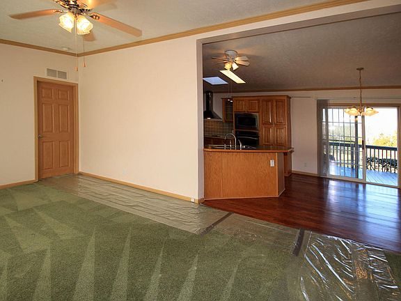Situated on a beautiful 3.27 acre lot, this offering features a walk in entry and open floor plan with living room and family room with fireplace. A spacious kitchen features stainless appliances with an abundance of cabinetry and built in oven and microwave. A split floorplan with master bedroom and bath on one side with the other 2 bedrooms and bath on the other end. Home features an office area and a mud room with half bath. Enjoy outdoor living from your covered deck and if you are looking for a shop there are two outbuildings. One of the buildings is 30 feet long, two rooms and equipped with electric. The fireplace has an electric insert but it is a wood burning fireplace behind the insert. Laminate floors are new in 2016