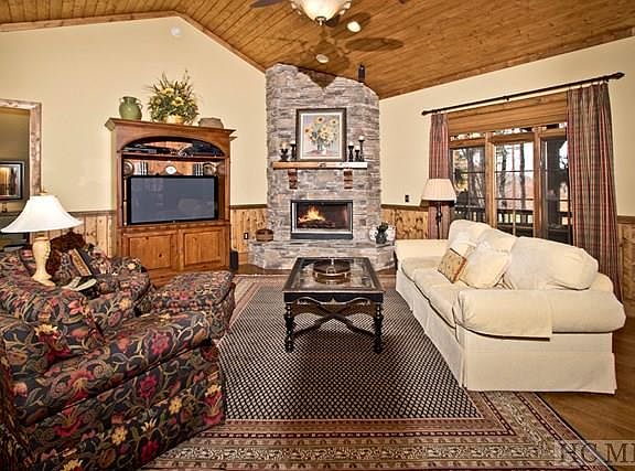 PRICE REDUCED by $50,000! Premium Mountain Southern Living Home on Links Side Estate Lot awaits you! A wonderful neighborhood with rare, level walk around streets all at 4,000 feet elevation. Drive your golf cart to club house, pool, tennis courts, and pro shop. Features include a well landscaped circular drive that leads to a carriage style two car garage with side entrance to a mud room. Master on main and a second master suite downstairs with two bedrooms all with on suite bathrooms and a family room with a game area. Three fireplaces (2 in and one out). Beautiful and bright kitchen appointed with upgraded appliances attaches to spacious dining for both casual and formal entertaining. Huge covered porches looking over two golf holes and mountains. Come for the fresh air and beautiful mountain-top views, and stay for the relaxation, great meals and boat rides on Lake Glenville. Golfing at Trillium is friendly and enjoyable, the Golf Professionals are very accommodating and accessible, encouraging every level of play. The club's marina on Lake Glenville offers motor boat and kayak rentals. The Lake Club parties are always a huge hit, featuring talented local bands and spectators can't help but join in the fun. An easy place to relax and enjoy the club amenities: golf, tennis, swimming, lake activities, tennis , fitness center and croquet. For those interested in a book club or hiking, Trillium offers both. Summer Camp is a wonderful and highly anticipated yearly experience for children and grandchildren. The club membership is a family membership which allows immediate children, their spouses and their children to use the golf, tennis & fitness center, all free of charge. If the property is used by the owner as a vacation rental, the renters will only pay: the amenity fee of $40 a day, or $185 a week. The renters will have access to everything in the club in the same guidelines as the appropriate membership of the owner of the property.