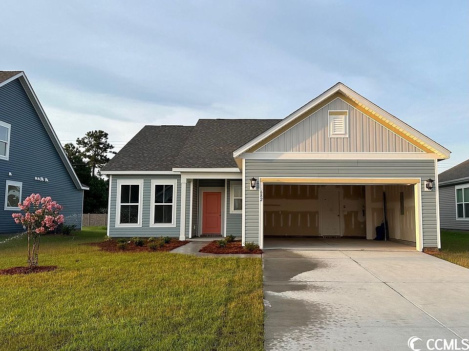 Popular Camden floor plan. 3 Bedrooms, 2 Baths, an open concept design with the kitchen open to the dining room and great room, and a split bedroom design with the Primary bedroom on one side and bedrooms 2 and 3 on the other side. The kitchen features stainless steel Whirlpool appliances (natural gas range, over the range microwave vented to the exterior, and dishwasher) a huge Island with lots of great Granite counter space and Level 2 Aristocraft cabinets. Easy maintenance Mohawk REV Wood laminate flooring with Pet Plus protection in the living areas, tile in all baths and the laundry room, Low-E Ply-Gem Windows, a tankless Rinna Water Heater located in the garage, and a fully sodded home site with foundation trees and shrubs. Energy Star Certified and Indoor Airplus Qualified to create a more comfortable home with better air quality, less pests, lower moisture, and an included ERV- Energy Recovery Ventilator Fresh Air system. Amenities include a community pool, pavilion, and trash collection.