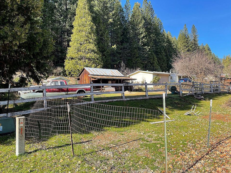 This is an affordable home in the country and a great neighborhood that is also close to town. A circular driveway leads to a 1440 sf. 2 bedroom 2 bath manufactured home with a nice open floor plan. This property has big barn/stalls for horses or whatever you like. There is a 2 car garage and a separate workshop all on 3.8 acres with creek frontage. Includes Starlink internet system and apple trees and a well casing. Interested in selling as-is on a cash offer or with a seller loan.