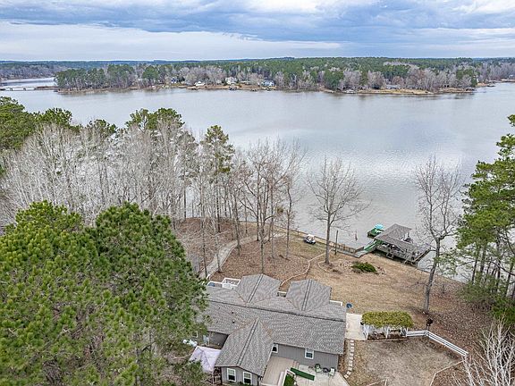 Updated home with amazing waterfront views, deep water (10+ feet) and a dock at an affordable price. Home boasts 207' of water frontage. It is a short walk from your deck to your dual stall boat slips (one covered) complete with boat and jet ski lift. Enjoy beautiful sunsets from your porch or sitting on your dock. Homeowners have added too many features to list them all. There is a gravel ramp/path from the house down to the water and around the property. Great room is wired for surround sound and includes a free standing set of gas logs and a wine refrigerator. Large deck areas on the front and rear with a portion covered. All appliances remain with the home (washer is brand new and others are within the six years). Two car carport and outside storage building with power. High Speed Fiber Optic Internet Cable. Roof was replaced in 2017 and HVAC in the main house in 2018. L shaped Boat House has power. This home has been meticulously maintained and is move in ready!