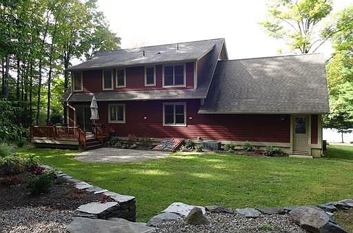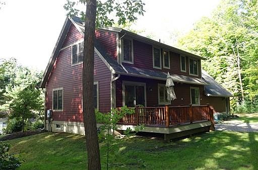 Quality built home by Kohl Construction offers an open floor plan, kitchen with cherry cabinetry, stainless appliances, granite counters and breakfast bar. The lovely dining area and living room space combine for great entertaining! Tiled foyer, bedroom/office and full bath complete the first level. Master suite with full bath and generous walk in closet, two bedrooms, full bath and separate laundry on the second floor. Bonus living space in the basement family room . The inviting deck overlooks a tiered back yard, stone wall detail and lovely landscaping with a wooded backdrop. Town water and sewer plus natural gas are great perks! Minutes to Amherst center, Universities, shopping and major routes. A gracious little gem!