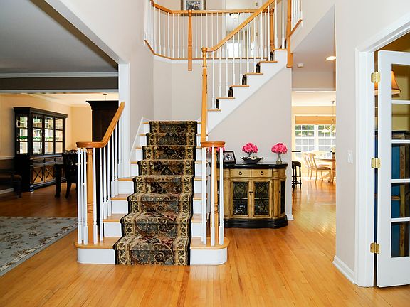 Impressive Center Hall on a secluded acre of professionally landscaped property. Enter into a dramatic 2 story foyer that opens into a private study and formal Living Room with adjacent Dining Room, Decadent gourmet EIK w/custom cabinetry, center island, granite, professional appliances and separate dining area.Kitchen transitions to a sunken Family Rm w/gas fireplace and sliders to a private fenced in yard enhanced w/ tennessee stone terraced patio, lush green backdrop and play area. MBS w/en-suite bath offers Jacuzzi and his/hers sinks, french doors lead to his/hers dressing area w/fitted closets and private sitting room with seasonal lake views. The second floor has 3 add'l bedrooms, main bath and laundry.Finished walk-out basement, 1/2 bath and abundance of storage. Add'l features include HW Flrs t/o 2 car garage.