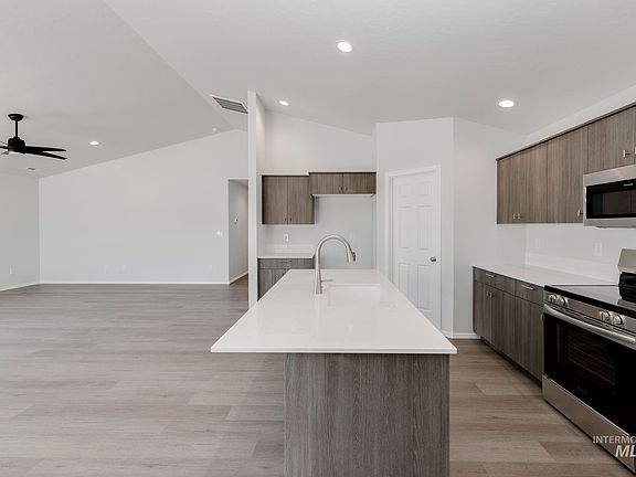 This brand new home located in vibrant Kuna, Idaho welcomes you with open arms. The Preston 2126 is designed with easy living in mind. Enter inside to the dedicated entryway and make your way to the open living areas, where vaulted ceilings and an abundance of natural light await. The kitchen, living room, and dining room combine to make the perfect hosting space, ready for get-togethers or movie nights. The kitchen comes with stainless steel appliances and stylish solid surface countertops, adding both functionality and aesthetics to the kitchen. The primary suite is tucked towards the back of the home for peace and tranquility with its large en suite bath and walk-in closet. Two additional bedrooms share a well-appointed full bathroom. Photos are of the actual home!