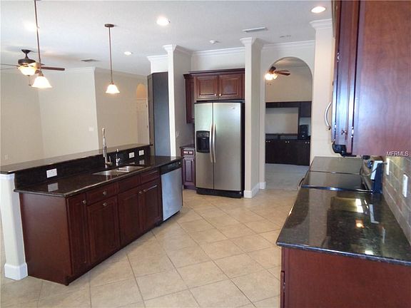 - Interior Features: Ceiling Fans(s), High Ceiling(s), Crown Molding, Walk-In Closet(s), Open Floorplan, Eating Space In Kitchen, Stone Counters, Tray Ceiling(s)