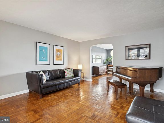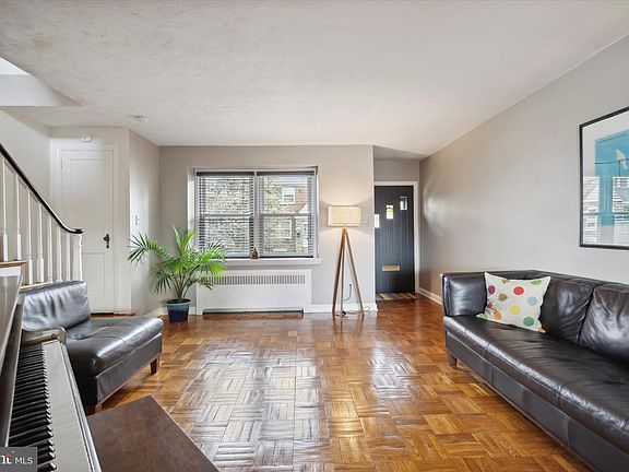 Old house lovers, here’s all the charm you could ever want, situated on a lovely Walnut Park block lined with townhomes with nicely landscaped front yards and a bucolic cemetery at the rear. This 18-foot-wide rowhome with a carefully curated color palette has been lovingly updated over the years where it matters most, while picture-perfect original details like hardwood floors; staircase millwork, banister and newel post; and doors with beautiful brass knobs and backplates are left to shine. Through the lovely arched front doorway, the main floor features original parquet floors, two sets of double windows with extra-deep sills and wood blinds, and an oversize plaster archway that connects the nicely sized living room to the dining room, with an extra-long black walnut breakfast bar to the kitchen. Here you’ll find a super-stylish workhorse of a space: great storage in fresh white lower cabinets and an entire wall of black walnut floating shelves (plus super-smart pantry racks along the basement stairs), a stainless steel Kenmore slide-in range and white Big Chill vintage-style fridge, and an undermount sink in cement-look countertops (shhh, we won’t tell they’re laminate if you don’t). Past a coat closet and up the stairs, the second floor has beautiful narrow-strip oak floors throughout the three sunny bedrooms, a hall linen closet and an awesome vintage-updated bath. The front bedroom is large enough for a king-sized bed and has two closets; one ample rear bedroom has peaceful views overlooking the cemetery and the third bedroom could fit a twin bed but would make an even better home office or reading den. The skylit hall bath’s new patterned cement tile floor, black vanity and rain showerhead nicely complement the to-die-for vintage details: yellow and black tile walls and tub surround complete with built-in toothbrush holder and soap dish, cast iron tub, medicine cabinet and light fixture. The basement isn’t finished, but with painted cement walls and floors and a sweet built-in bar nook it could totally be used an extra hang space on your way to the attached garage. The Upper Darby location offers a rare trifecta: easy access to the city, suburban conveniences, and nature. Just outside city limits, it’s super convenient to SEPTA’s 69th St terminal, suburban shopping centers you’d expect in Delco, and Cobbs Creek green spaces.