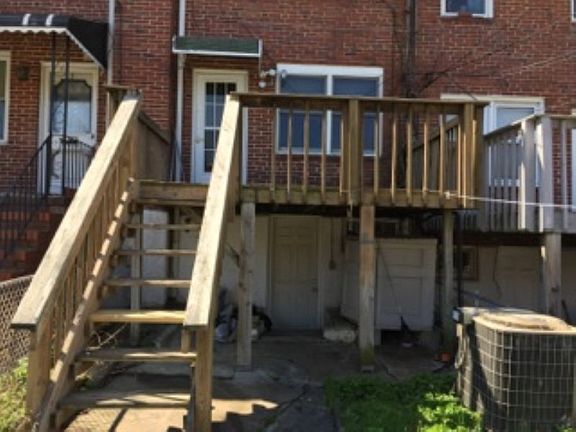 Charming row home on quiet street in Eastwood. Close to Interstate 95 and Bayview Hospital and 1 block from Community Park. Central A/C, Large Deck, Marble Bathrooms. Washer and Dryer and ceiling fans. 1st Floor has new carpet in living room, dining room and kitchen with brand new fridge. Back door provides access to large deck. Second floor has 2 bedrooms with hardwood floors and a full bathroom. Upstairs bath has a soaking tub and marble tiled walls and floor. Basement contains 1 bedroom with new carpet, 1 full bathroom, washer dryer and exterior door to access backyard. Many upgrades have been made to the home in the past several years. For more properties like this visit GoSection8.com.