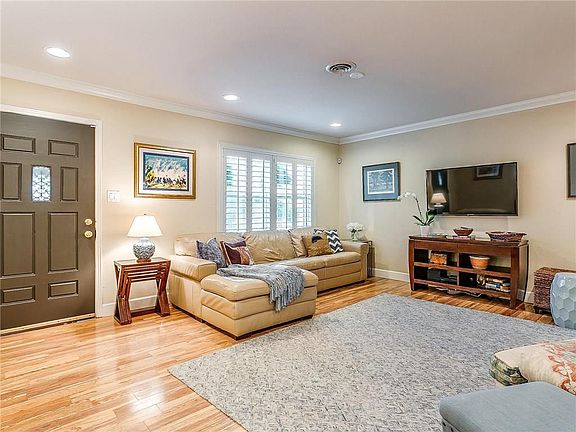 Beautiful, thoughtful updates throughout this 3 bedroom, 2 bath home! Custom updates include wood floors, plantation shutters, crown molding and tall baseboards throughout. Large kitchen features classic finishes; granite counters, tile backsplash and stainless appliances including gas cooktop. Master suite is light & bright with 2 closets and marble flooring in the bathroom. Secondary bedrooms are generously sized. Hall bath offers neutral color scheme, Walker Zanger floor tile and granite counters. Laundry room with sink and ample storage also serves a mud room between garage and backyard. Large, manicured backyard with flagstone patio and shade trees. Walk to the park & school!