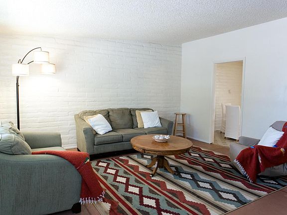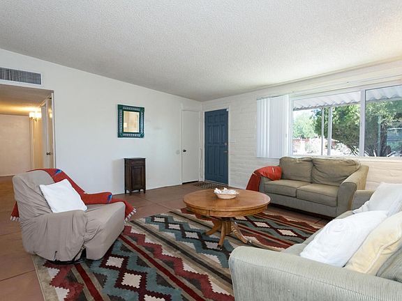 Mid-Century Charmer. 3 bed/2 bath w/ large light open kitchen, dining area & spacious living rm. Home has North/South exposure on large lot. Yard boasts extended covered patio, pool size backyard w/ mature landscaping, easy care & alley access. Come see this beauty... scored concrete floors, exposed brick, good size bedrooms, 2 walk in closets, inside laundry, carport, security door & appliances included. Kitchen boasts gas stove, lots of cabinets and counter space. Storage rm & shed. TERRIFIC LOCATION! 2 blocks from Palo Verde park w/ pool, dog park & playground. 3 blocks from the A rated Annie Kellond Elem School. Close to recreation & shopping as well. NO HOA!!!! Well cared for & it shows!