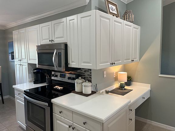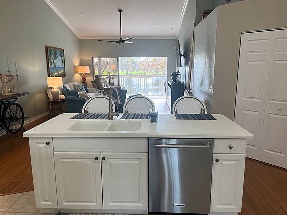 Just updated by owner who is interior designer! Right out of Coastal Living (some furnishings are authentic Coastal Living brand)! Best view (water/golf) in the community. New flooring in both bedrooms. No carpet. Lives very large with vaulted ceilings and pocket sliders that open to screened porch with wide view of lake and golf course! Freshly painted and new light fixtures too! Fully furnished! Master bedroom (king bed) with bath en-suite. Guest bedroom with queen bed. Easy access to I-75 to Tampa/St. Petersburg, Sarasota, Lakewood Ranch; downtown Bradenton.