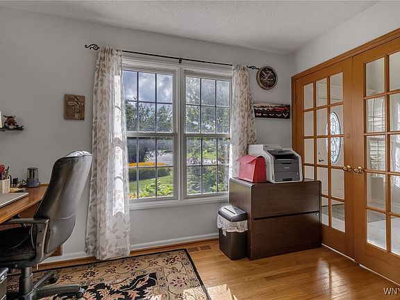 Great location near Millersport/Transit & Starpoint Schools. Welcome to Your Dream Home! Step into this meticulously maintained property, boasting over 2,500 square feet of beautifully crafted living space. From the moment you enter, you'll be greeted by a welcoming two-story foyer, that sets the tone for the rest of this exceptional home. Surrounded by mature trees and luscious landscaping, this home is a beauty inside and out with gleaming hardwood floors & neutral paint colors. Primary Bedroom suite features walk in closet, and glamour bath. Addt'l 3 Bedrooms, and bath on 2nd level. 1st floor office makes working from home a pleasure. The heart of the home features a kitchen with an island, granite counters, and a stylish tile backsplash that adjoins a spacious family room with fireplace all overlooking the beautiful rear yard. Slider off the kitchen leads to great yard & large deck. Super-sized retractable awning with remote for effortless shade. Cabinets & fridge in garage included. Guardian Generator, 1st floor laundry & invisible fence for your furry friend. Brand new sump pump. Just move in & enjoy. Open House Sunday 8-25 from 1:00-3:00 PM