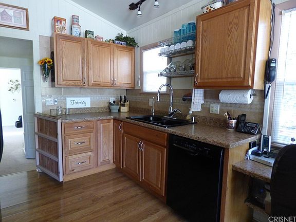 Four bedroom, 2 bath home with large fenced back yard on paved road. Step down living room with recessed lights and access to back yard. Kitchen consists of a dining area, pergot flooring, pantry and a tankless water heater. Gas range, refrigerator, dishwasher and microwave are all included. 2 of the bedrooms are off the living room with another bedroom downstairs. There is also a bonus room/office downstairs with access to the basement area. The den has skylights and is wired for surround sound. The master bedroom has a separate door to the covered patio, and the adjoining master bath includes a walk-in closet, spa tub, double sinks and recessed lights. The exterior has low maintenance vinyl siding. The private back yard consists of raised garden beds, 2 sheds - 1 is a workshop with adjoining green house, and the other is ideal for an artist's studio. There is also a separate dog run with access from the dining area. A beautiful home with so many extras!