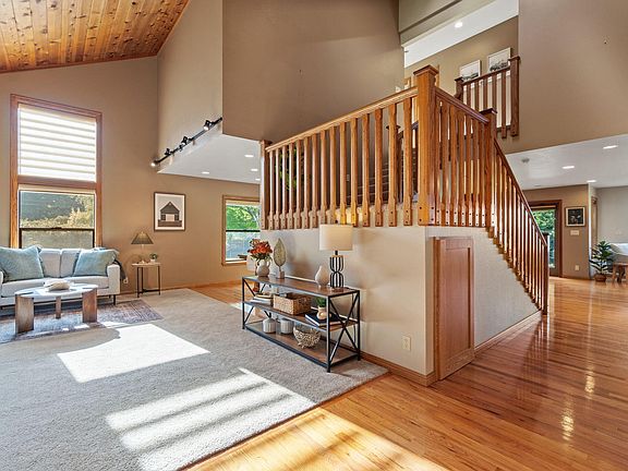 Epic Views of Elk River Valley and Beyond plus mountain views in back! Enjoy privacy close to town. A serene, peaceful setting with classic quality features throughout. A stacked stone fireplace embraces you upon entry to the living room. The home draws you in with hardwood floors, custom wood work, granite counters and built in cabinets adorn the dining room & the kitchen where it meets the family room with VIEWS!