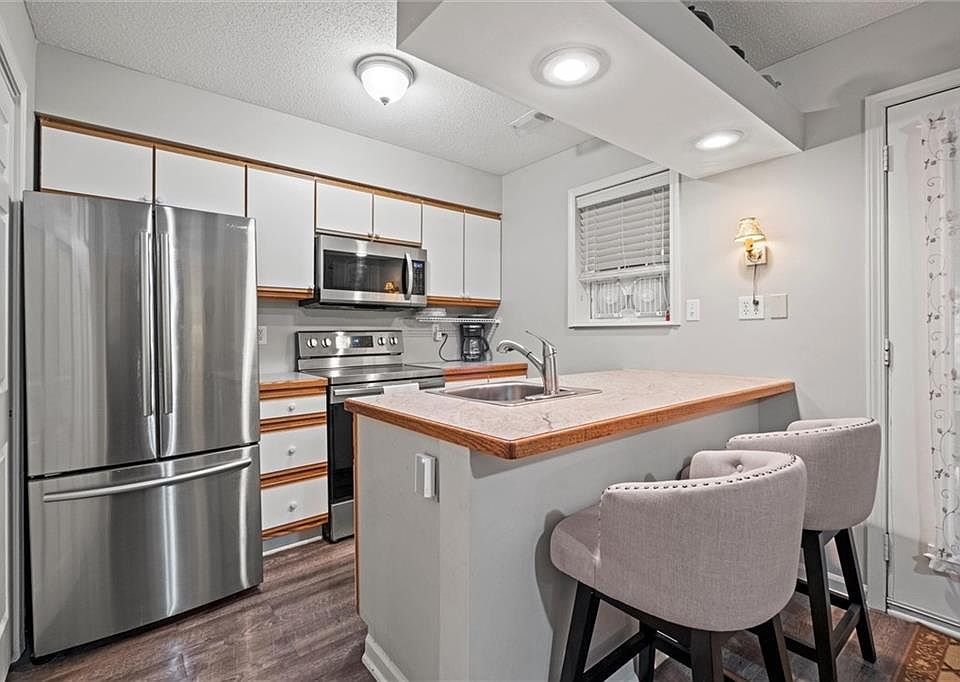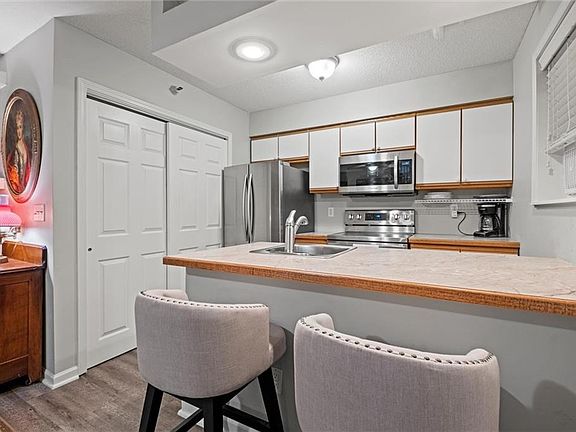This Low-maintenance, 2 bedroom, 2 bathroom condo in Northaven Village, Gladstone is move-in ready and waiting for you!  Situated on the ground floor, this living situation requires NO STAIRS!  The condo has been updated with all new stainless steel kitchen appliances. The microwave, refrigerator, and stove were replaced by the current owners in 2020.  An adorable enclosed porch has been converted into a fully functional four seasons room complete with vinyl glass sliders and additional storage. The current owners enjoy it year-round!  Washer Dryer are in-unit off the kitchen. A reserved covered parking spot is included and additional uncovered spaces are available as well. Luxury Vinyl planks adorn the kitchen floors as well as the four seasons room. Don't miss the chance to call this stylish condo home!