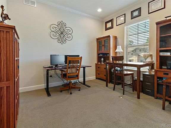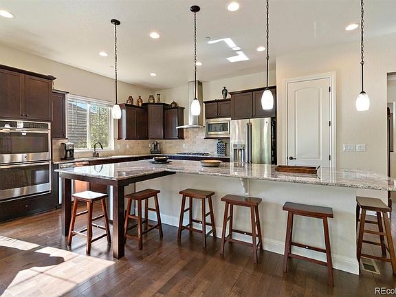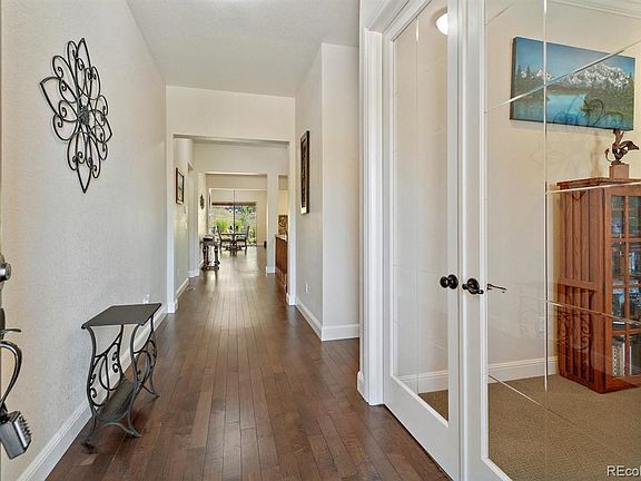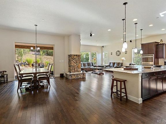 Beautiful newer ranch home in Castle Pines Village! Exceptionally clean and well maintained. This design embraces the open concept with a gourmet kitchen that flows easily into the living room, dining area and outside patio. Hardwood floors throughout main level. Exceptional finishes and attention to detail. The kitchen has an oversized island perfect for cooking and eating. Slab granite counters, backsplash, undermounted granite sink, double oven plus a gas cooktop make it a cooks dream. Large master bedroom and master bath with an exceptional shower create a spa like experience. The sellers have spent over $55,000 on landscaping and have created a backyard oasis featuring a covered patio, private sitting area and pond. Cul De Sac location! 3 car attached garage. Castle Pines Village is a gated community that has multiple pools, clubhouse, walking paths, private security and emergency response, tennis courts and golf. Easy access to I-25, shopping, dining and the Denver Tech Center. Award winning Douglas County school district.