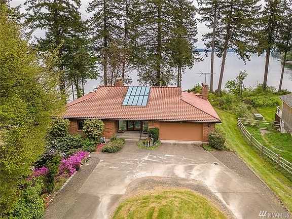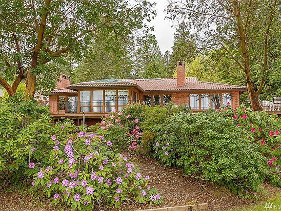 Brilliant Puget Sound & Mt Rainier views from hm & 142' waterfront. Cool touches-custom leaded glass wall, see-thru fpls and Art deco bath on main. Updated kitchen w/quartz, subtle lighting, open ceiling, double ovens + eating area w/skywall & of course, views everywhere. Giant deck with tons of sun. 2 Master Suites w/private baths (one on main, one on lower). Rec rm & multi-purpose bonus rm garden level.Outbuildings- parking for 8 vehicles. You own the beach & can make $$ on geoduck farming.