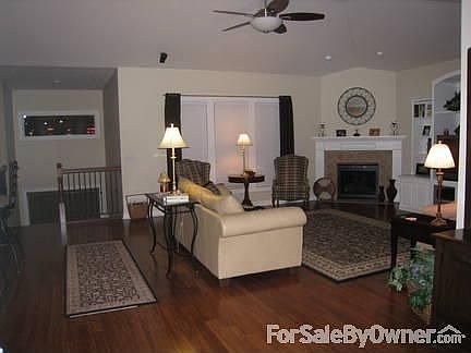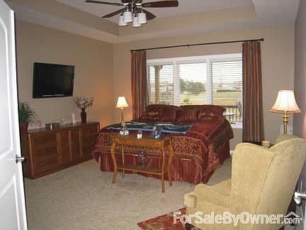 Motivated Sellers!! Beautiful 3 year old custom built ranch home in South Ridge with over 3650 finished square feet. 4 bedrooms, 3 3/4 baths in a large open floor plan with beautiful bamboo hardwood floors. Its easy to entertain in this large family room with surround sound and gas fireplace, cathedral ceiling opens to the large eat-in kitchen with a raised height counter/bar and island. Maple cabinets, granite countertops, tile backsplash, and stainless steel appliances make for a beautiful kitchen. There's also a separate dining room with tray ceiling and inset built for a hutch. Master suite with dual sinks, tile shower, whirlpool tub, and huge master closet. 1 other bedroom on main floor with full bath.Partial walk-out basement with oversized family room, wet bar with granite countertops, cherry cabinets, gas fireplace and wired for surround sound. 2 bedrooms, one with its own on-suite bath and walk-in closet. Very large lot, backs to neighborhood retention pond with fountain. 3 outdoor entertainment areas including a covered deck and separate brick paver patio with stone seating wall. Landscaping complete with Underground sprinkler system, curbing all around the house, landscape rock, and many beautiful annuals. 3 car garage is very large with almost 1000 sq ft. Walk to shopping, Adams Elementary, Scott Middle School Additional property info: http://www.forsalebyowner.com/listing/BFE6C?provider_id=28079
