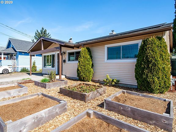 Solid remolded ranch. Home features 3 bedrooms, wood floors throughout, and open floor plan with granite counter tops, a kitchen island and a remodeled bathroom. Solar panels, new insulation, newer windows, new electric panel, large fenced yard, and planter boxes for organic veggies. Minutes to highways, shopping and public transportation. [Home Energy Score = 5. HES Report at https://rpt.greenbuildingregistry.com/hes/OR10035043]
