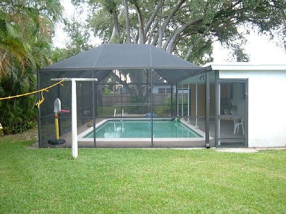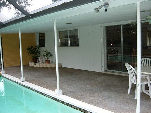 PRICE JUST REDUCED!!!THIS GORGEOUS PINES VILLAGE HOME HAS 3 SPACIOUS BEDROOMS AND A HUGE DEN WHICH COULD EASILY BE A 4TH BEDROOM. BEAUTIFUL SCREENED IN POOL/PATIO AREA AND AN OVERSIZED 1/4 ACRE LOT. INTERIOR FEATURES INCLUDE NEW OAK LAMINATE FLOORS IN BEDROOMS, DECORATIVE STONE WALLS IN LIVING AND KITCHEN AREAS. GAS WATER HEATER AND STOVE. ALSO INCLUDES HURRICANE SHUTTERS. YOU WON'T BE DISSAPOINTED!!!