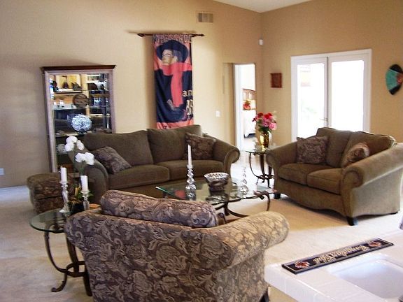 This great 3BR/2,5BA home is currently the nicest Panorama residence that you might want to consider your new home. It has been meticulously maintained and proves pride ownership!Inside there is great separation of rooms, a large and cozy living room with double sliding doors to the pool area. The nice vaulted ceiling and fireplace will make this your favorite room! A wetbar island separates this room from the formal dining room. The kitchen with upgraded appliances has the perfect space to cook and has the very inviting den/sitting area and a breakfast counter.This room also gives out to the pool area and is equipped with rolling screens on the sliding door. Outside the large covered patio, the pool (with solar heat), spa and the lush landscaping create your personal oases in the desert. Claim this home as your new full time residence or vacation home.Just walking up to the double front door entrance will entrance you through the abundance of roses. Call now for a private showing!