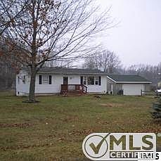 9 acre country ranch with 2 car detached garage, additional storage.Eat in kitchen - Fenced backyard - Beautiful country setting - woods in back. Back border is a creek. Great hunting!