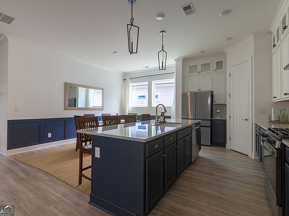 Welcome to your dream home! Master on main!!! This beautiful upgraded 2-bedroom, 2-bath Split-plan is nestled in the highly desirable 55+ gated community of The Retreat at Sterling on the Lake. With more features and upgrades than new construction, this move-in ready home offers an exceptional lifestyle in a tranquil setting. Step into the heart of the home where the gourmet kitchen is sure to impress. Featuring custom white cabinetry that extends to the ceiling, top glass cabinet fronts with LED lighting, and dark blue base cabinets, this kitchen blends modern style with functionality and comes with high-end appliances. The oversized kitchen island with stunning granite countertops is perfect for meal prep or hosting guest, complemented by pendant lighting and a matching faucet. Natural light pours into the great room through a 12 foot cascading glass door, leading to a private, screened -in patio. Here you can enjoy morning coffee or entertain in style, surrounded by nature and peaceful views. The formal dining room features elegant judges paneling, making it perfect for special occasions. For those needing a quite space to work or relax, the versatile study/office, flooded with natural light, is complete with a trey ceiling for added charm. Your luxurious owner's suite offers a serene retreat, with a spacious walk-in closet and spa-like bathroom . This oversized shower with a waterfall shower head and zero-entry flooring will make you feel like you're at a resort. Double vanities, extended counters and an additional linen closet ensure both style and convenience. With a split-bedroom plan, the guest room enjoys privacy and is located next to a full bathroom, making this ideal for visitors or family members. Additional features: Crown molding throughout, two-car garage with epoxy flooring and irrigation system for front and back yard. Living at The Retreat at Sterling on the Lake means more than just a home- it's a lifestyle! The community offers : -separate clubhouse, fitness center, pool and tennis/pickle ball courts -lakeside pavilion, outdoor fireplace and walking trails -social events such as food trucks, festivals and fireworks HOA includes weekly lawn maintenance This home is a perfect blend of luxury, comfort, and convenience, with access to resort-style amenities and a vibrant community. Come see what makes this home and the neighborhood truly special Schedule your tour today