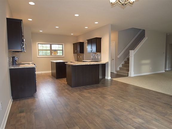 Lancia's Parade Home design the Autumn Whisper is 2179sq.ft. Master on the Main home that suits the whole family. This 4 Bedroom+Loft home has an upgraded 3-Car garage with expanded sq. footage in the GR and Master. 9' ceiling on the 1st floor with gas fireplace, extra transoms for light, Kitchen faces the GR and Nook. Kitchen has tile backsplash, smooth top range in stainless, upgrade faucets, hardware and sink. Kitchen has a popular desk area for dual purpose working Kitchen and separate island. Larger Craftsman casing throughout. Master Bath has swing shower door, dual lavs and ceramic tile floor. Ceramic tile floor also in 1/2 Bath. Laminate wood in Foyer, Kitchen and Nook. Utility room off the Garage. Plenty of storage space in this home. Elevation sports the Crafts man look with porch rail, stone and vinyl shakes. 14 x 14 Patio off Nook backs up to wooded area on a quiet cul-de-sac. Close to schools and shopping. Home designed and built by Lancia Homes, one of the top builders in Northeast Indiana since 1975.