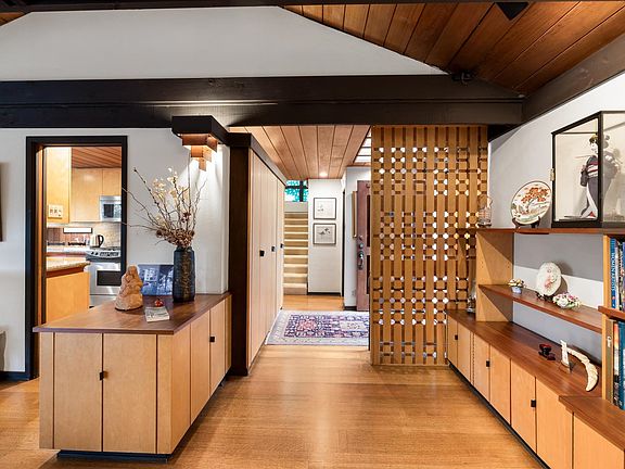 Dodek House by Ron Thom beautifully cared for by the original owners.AIBC Honour Award 1960.Massey Medal Winner & featured prominently in VAG Ron Thom Exhibition 1961. Heritage Designation in 2005.Japanese influenced simplicity mixed with dynamic geometry.Original L shaped design later expanded to a U shape surrounding a private,lush courtyard. Spectacular living room with soaring beamed ceilings anchored by a signature massive brick fireplace & wrapped in floor to ceiling windows opening out to sunny patio.Features include:Birch and teak built in furniture & cabinetry by Joseph Pliss, stain glass windows by Brian Baxter, custom light fixtures ,“egg crate” staircase window, concentrically arranged cedar bedroom ceilings.Kitchen by Hollingsworth 2001 & upstairs bathrooms by Ledingham 2007.