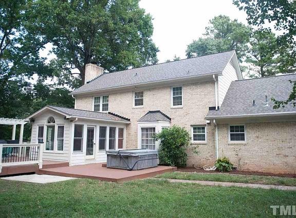 Updated traditional all brick home located in Mid-Town Raleigh. Loaded with upgrades...NEW kitchen with 42" maple cabinets, granite, tile backsplash, SS appliances and hardwood flooring. Formal living rm & dining rm with hardwoods. Over-sized master with his & hers closets. Surround sound, hot tub, fenced back yard, over-sized 2 car garage.