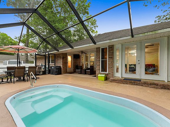 Check out his beautiful, modernized Jones built house with a heated spa pool! 24' x 32' screened area including the spa pool & covered porch. Some of the main features are crown molding, laminated wood-like flooring, open & split floor plan, large living room with a gas fireplace, Florida room, dining/bonus room, breakfast room, spacious kitchen, Corian counter-tops, stainless steel appliances, circular driveway, double car garage with workshop, large fenced backyard, & so much more The luxurious master bathroom includes jetted tub, separate shower with two shower-heads, two vanities, make-up vanity, & walk-in closet. This is sure to blow you away. Come make this house your home!