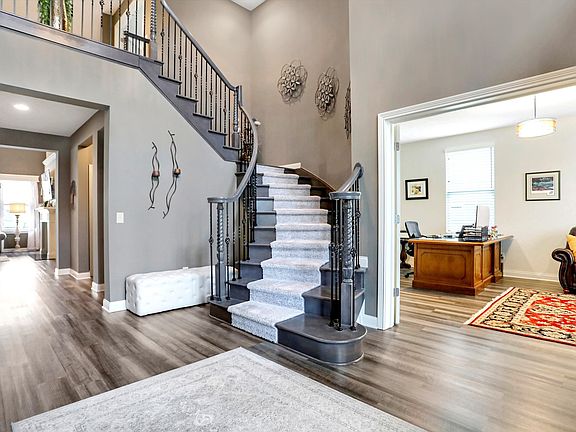 Escape to your own private oasis in sought-after Lochaven in this stunning home situated on private lake with dock. Warm and inviting entryway with beautiful curved staircase opens to stunning vaulted great room with built-ins and gas log fireplace. Light-filled and well-appointed kitchen features light gray cabinetry, sleek quartz countertops, stainless steel appliances, gas 5 burner cooktop, tile backsplash, walk-in pantry and center island with seating for 4. Main floor features beautiful luxury vinyl plank flooring and den/office with glass French doors. Retreat to the spacious main floor primary bedroom and bath with soaking tub, separate shower, quartz countertops and custom walk-in closet. Dream laundry room with cabinetry, sink and extra full-size refrigerator (negotiable). Two additional bedrooms and bonus room upstairs. Extra space can be found in the daylight lower level. Covered front porch and back deck / patio with covered pergola offer multiple spaces perfect for both entertaining or relaxing! Incredible water views! Neighborhood amenities include 2 swimming pools, fitness center, walking trails and private boat launch. All within minutes to restaurants, schools, Dillon Park, and more!