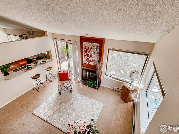 Delightful 2nd floor condo with loft with views of the mountains close to downtown Niwot. Open floor plan with light beaming through the condo. Vaulted ceilings, wood burning fireplace and new range and refrigerator. Large master suite with large closet and new flooring in 3/4 bath. Updated main bath. You will love the loft space with very large storage closet. Enjoy the balcony with views to open space and the mountain. Walk to all Niwot amenities. Complex will be getting new roofs.