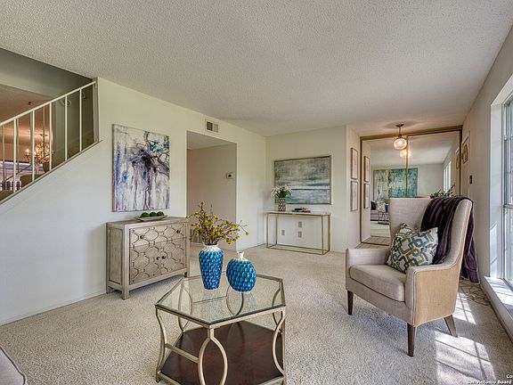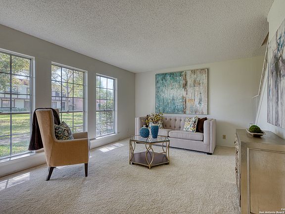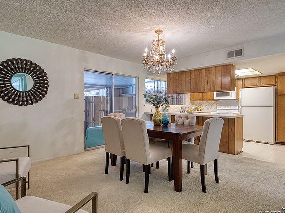 Enjoy the carefree lifestyle of townhome living! First time on the market since the original build, the home has been lovingly maintained by the original owner. Recent improvements include newer HVAC, hot water heater, microwave and washing machine. Downstairs features an open floorplan with breakfast bar, separate dining and living areas and half bath. Upstairs features a large primary suite with 2 separate vanities and 2 walk-in closets, plus 2 additional large bedrooms and full bath. Covered fenced patio, with direct access to large carport and exterior storage room. New roofing in progress throughout the community, as part of the HOA maintenance plan. Walk out your front door to a park-like setting and enjoy community pool, playground, and clubhouse with gym, sauna and recreation/ event room! Super location, minutes to IH 35 and Loops 410 and 1604. Priced to accommodate buyer updates that reflect your personal style!