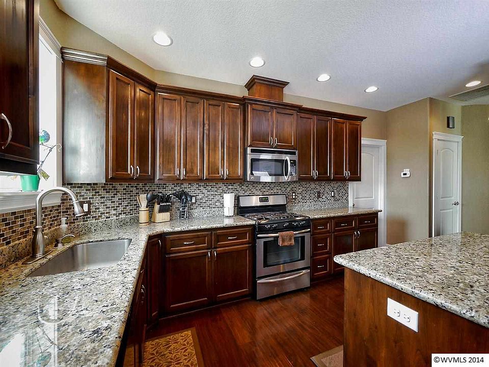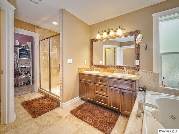 Fantastic custom S Salem home! Solid slab granite w/full back splash, S.S. appliances gas cook top, & walk in pantry. Trayed ceiling throughout w/crown molding & recessed lighting. Master suite that will knock your socks off! Travertine floors, full walk in shower w/separate jetted tub & dual vanities. Custom landscaping to take full advantage of the 8700 sq ft lot. Fully fenced w/huge yard & built in fire pit. Separate office w/shop in the garage & ample storage.