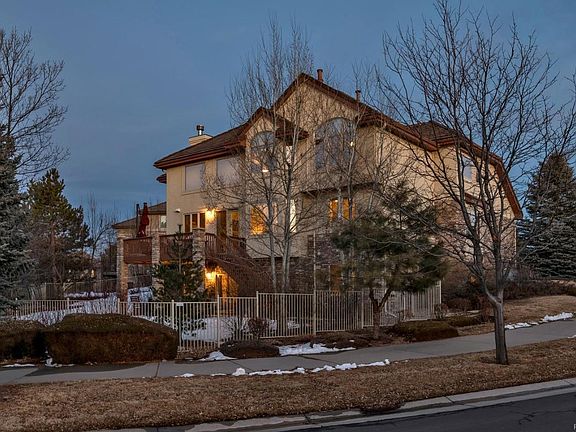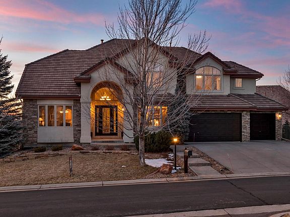 This is the one! You will love this custom two-story home in Saddle Rock Golf Club. Mountain views! Gorgeous finishes throughout. Surround sound in select rooms. Hardwoods on the main & upstairs hallways. Formal living & dining rooms. Open gourmet kitchen with maple cabinetry, slab granite, top of the line stainless steel appliances, large center island with prep sink, butler's pantry & large eating space. Two-story great room with gas log fireplace. Take a look at those views out of the master suite with sitting area and double sided fireplace. Five piece master bath with heated floor & soaking tub. Nice sized secondary bedrooms all with private baths. Finished walkout basement with theatre room, large bar area, game area, two additional bedrooms and a 3/4 bath that has a steam shower. Good storage space. Dual furnaces & A/C's. A Must See!