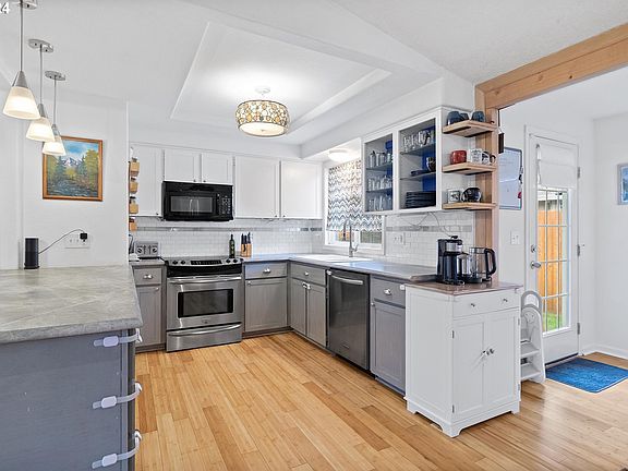 1-Level living on the outskirts of Portland's Brentwood-Darlington neighborhood & bordering the Mt. Scott-Arleta neighborhood. This location is great for enjoying the offerings of both neighborhoods! Large front yard with covered entryway. Inside the front door your eyes will be drawn to the bamboo floors throughout and the vaulted ceiling in the living room. Kitchen with coffered ceiling & eat bar opens to the living & dining rooms. Down the hall you'll find 3 bedrooms and 2 full bathrooms, including the primary suite with an ensuite bathroom and jetted tub! Enjoy the large fenced backyard with a gorgeous gazebo & composite deck which gives access to a private office space with it's own mini-split. The landscaped backyard has a garden shed & makes a great space for gatherings/activities. ~ BIG Two-Car Garage with Separate Utility Space ~ Tankless Water Heater ~ Forced Air Furnace ~ Woodburning Fireplace. Schedule a tour today!