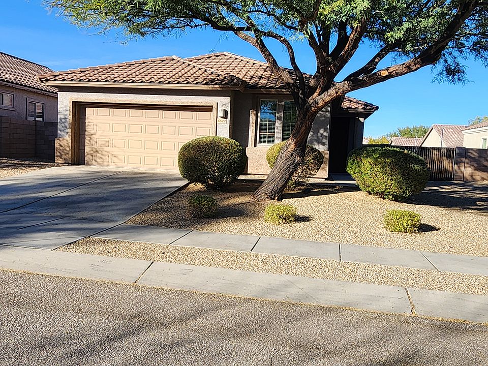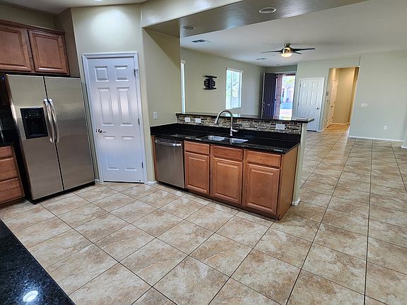 Welcome to this captivating 4-bedroom, 2-bathroom home, featuring a charming archway that guides you to the front door. Inside, you'll find a spacious great room. The large kitchen is equipped with a stove, built-in microwave, refrigerator, dishwasher, and a convenient bar top, there's also a pantry for extra storage. Laundry room with washer and dryer hook-ups. The generously-sized master bedroom offers its own bathroom, complete with a double vanity and a walk-in closet. Outside, the expansive backyard is beautifully landscaped, providing an ideal space for outdoor activities and relaxation. Don't miss this opportunity! All applicants 18 years or older must meet background requirements. Pets are allowed on a case by case basis along with a pet deposit. This home is available now for a 1 year lease. The rental rate is $ 2,000 per month and the security deposit is $2,000. Tenant is responsible for all utilities and landscaping maintenance.