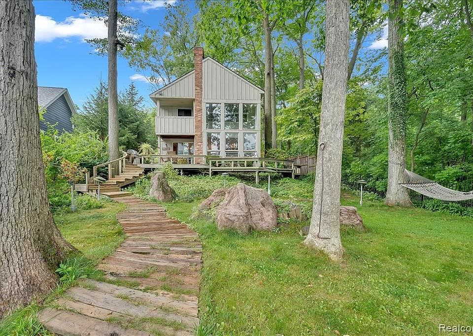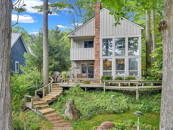 CUSTOM BUILD LAKEFRONT HOME. Retreat-like home sits on wooded lot, with 40' of lake frontage and private dock. Property has extensive gardens with ground covering, and perennials. Multi-tiered deck and walkway around back of home that leads to stone patio with fire pit, and down to the water. Wood floors throughout home, custom trim and built-ins throughout. 3 large bedrooms, with finished attic space that could be used as a 4th bedroom. Primary bedroom overlooks the family room, and has a bonus room that could be used as a home office space. Plenty of storage on shelving in 5' crawl, and in second half of attic. BBQ with gas line. Fish Lake is electric motors only. Very quiet and enjoyable to spend time on deck, balcony, or patio. New A/C and furnace 2022, New well pump 2013, extensive chimney repair/upkeep 2018. Home sold as is. BATVAI