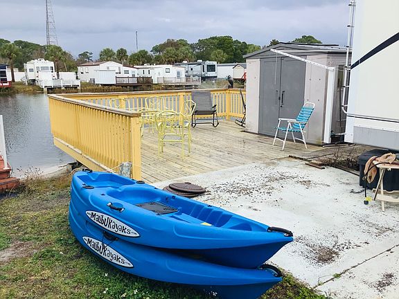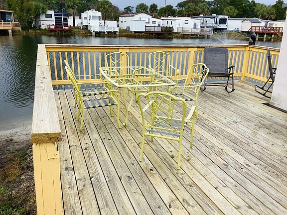 This is a beautiful Rv located in the Sundance Lakes RV Resort. Sun Dance Lakes RV Resort is a adult community accepting ages 18+. NO CHILDREN can live in this park. Yes! children can visit but they cant hold a primary residence. The Park requires all applicants to have a clean criminal background, and a credit score of 600+. Pets are allowed the weight limit is 60lbs. Lot rent is 438.00 each month and includes water, sewer, trash and lawn care. If you are going to be a winter resident you can save a $100 dollars a month. The park offers a six month option. Sundance Lakes also offers a swimming pool surrounded by a sun deck, perfect for lounging before taking a dip in the glistening water. Make new friends while you play a game of bocce ball, horseshoes, shuffleboard,This is perfect for full timers and snowbirds. You will not find a cheaper lake front property! A beautiful huge brand new deck to enjoy your water front view. Its equipped with kitchen, refrigerator,microwave,range, in unit washer, and central a/c. Lot rent is $438.00 each month and includes water, sewer, and trash. Call Lillian to schedule your private or virtual tour.