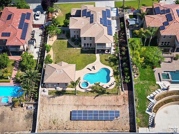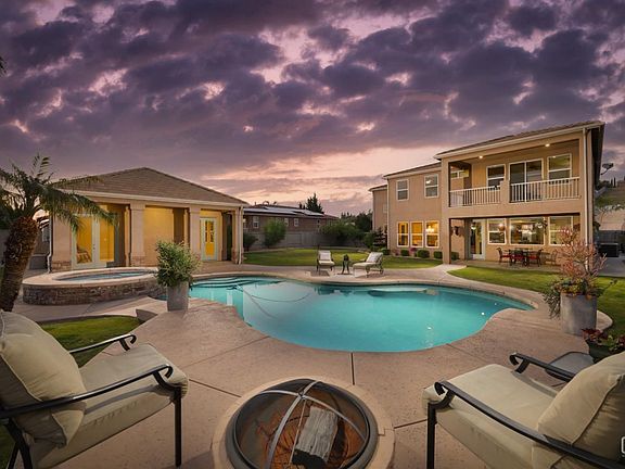This exquisite five-bedroom, four- bathroom home in the prestigious gated community of Tuscany in northeast Bakersfield boasts breathtaking views. With a separate one-bedroom, one-bath Casita, it offers ample space and privacy. The attention to detail is evident throughout, from the formal dining and living rooms to the open split-wing floor plan. It's features include crown molding, towering ceilings, surround sound, a beautiful pool and spa, solar panels, cozy fireplace, rain gutters, travertine flooring, and laminate hardwood, upstairs gameroom, RV parking and 3 car garage. The spacious chef's kitchen is equipped with granite countertops, a large center island, and stainless steel appliances. The master suite offers city views from its own private patio, a Jacuzzi tub, and two walk-in closets. The main garage is climate controlled with heating and AC. This has one-of-a-kind views with an outstanding oversized yard.
