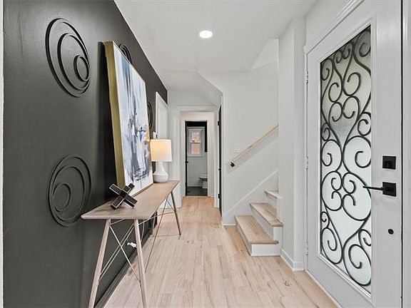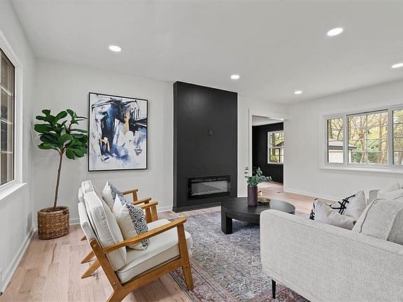 This 4-bedroom, 2.5-bath home is thoughtfully designed with flexibility in mind—featuring a main-level bedroom and a moody bonus office perfect for work or creative space. Linear fireplace adds a touch of modern to the front living room The eat in kitchen is showstopper: granite counters, high-end appliances, a gas range with hood, and an eat-in island that invites casual gathering or late night/early morning bowls of cereal, with space to tuck in those stools afterward.
