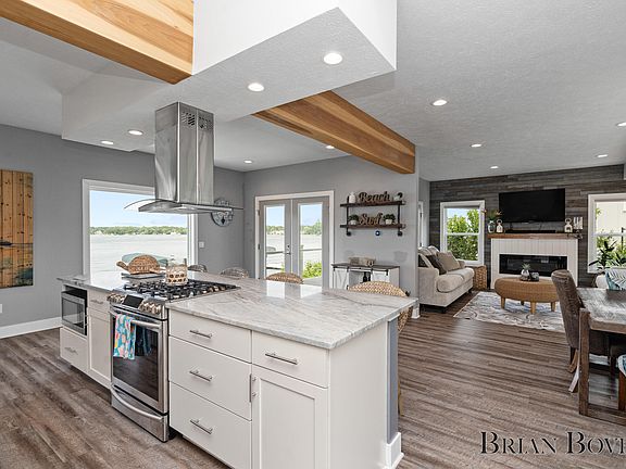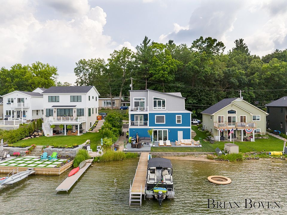 Experience lakeside living at its finest on all-sports Bostwick Lake in Rockford. This home features an open-concept main living space with elevated lake views from nearly every room. The modern kitchen boasts a 10-foot island, and the main living area leads to a covered deck overlooking the water.